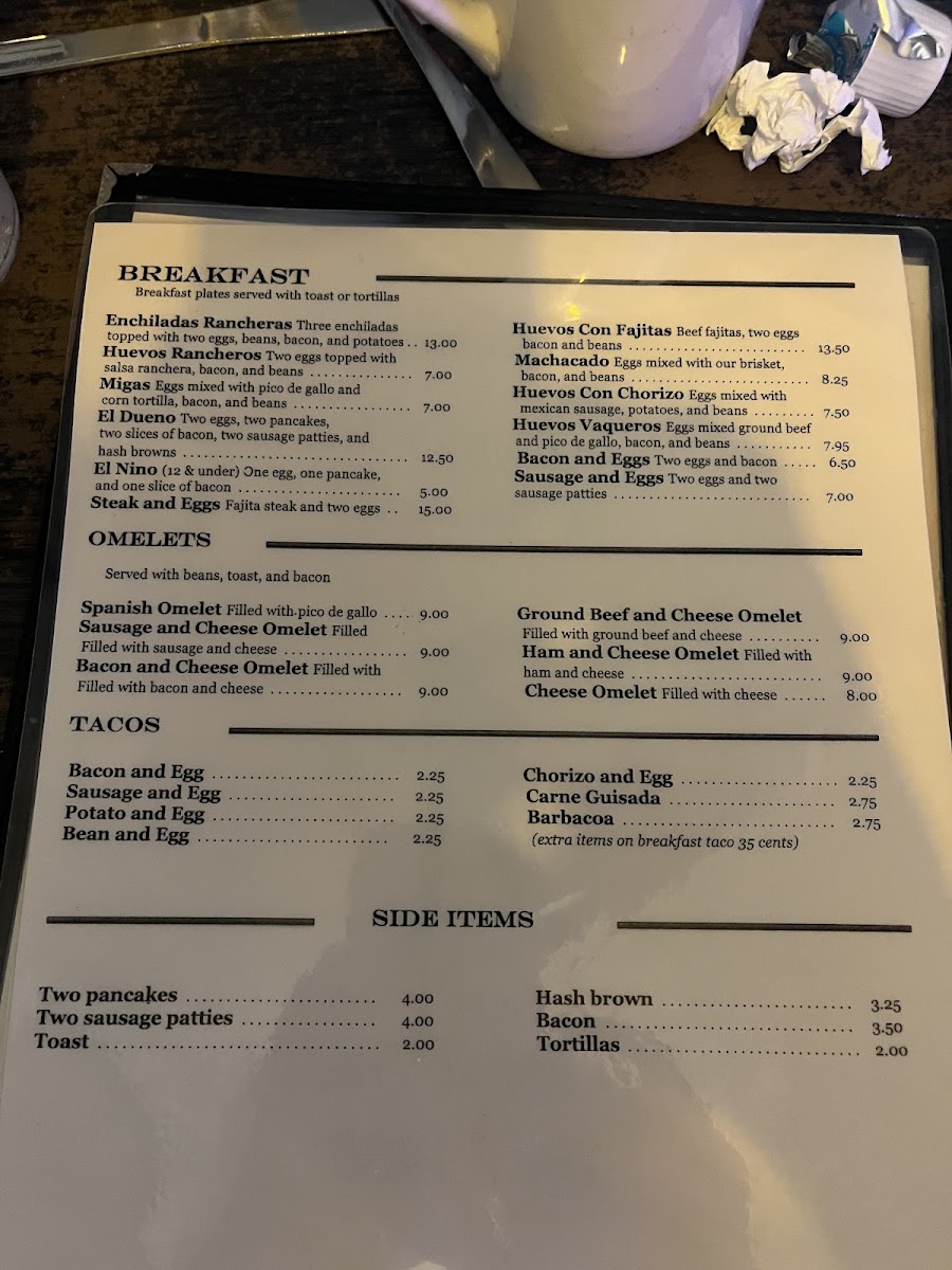 You can expect comforting favorites such as enchiladas served with your choice of savory sauces, hearty tacos, and family-style nachos. Morning visitors might enjoy their Steak and Eggs Breakfast or the flavorful Enchiladas Rancheras to start the day, while lunch options like the Cantina Nachos Lunch, Chicken Fajita Tacos, or the Special Combination Nachos make for satisfying midday meals.